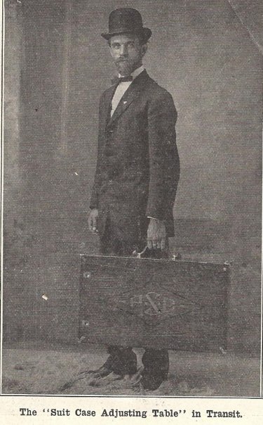 I found a nifty photo of BJ holding an Adams Suit Case Table in his early days of chiropractic.