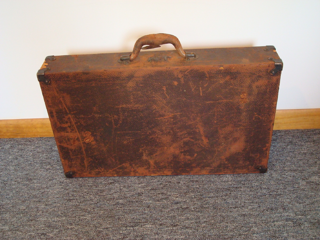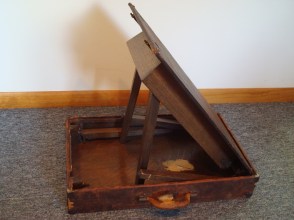 It starts out as a nice leather covered suitcase. Handsome and easily portable.