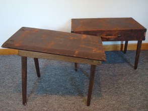 Both become a table by lifting up the collapsing legs and turning the securing latches to lock them in place.