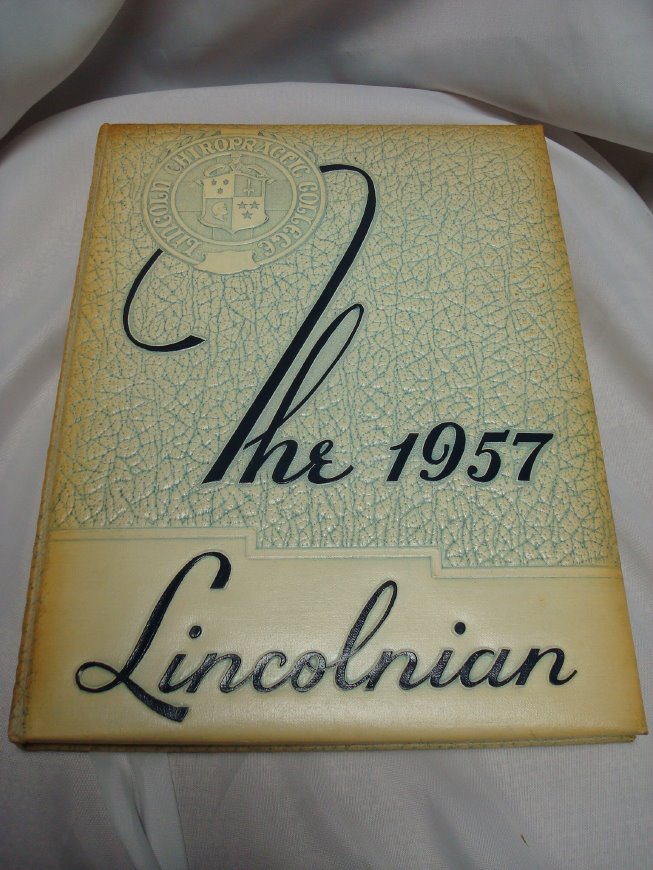 I made a quick dash to a bookcase to look for the much sought after “green books.” No dice. I did, however, come across a 1957 Lincoln Chiropractic School yearbook.