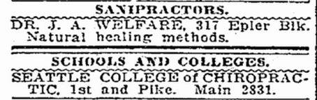 Seattle College of Chiropractic History » Seattel College of Chiropractic – ad 1922, 1st and Pike